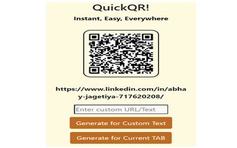 QuickQR, tarayıcı deneyiminizi daha verimli hale getirmek için tasarlanmıştır. Kullanıcı dostu arayüzü sayesinde, QR kodları oluşturmak sadece birkaç tıklama ile mümkündür. Bu eklenti, sık sık QR kodlarına ihtiyaç duyan kullanıcılar için ideal bir çözümdür ve web üzerindeki içeriklerinizi mobil cihazlarla paylaşmayı oldukça pratik hale getirir.